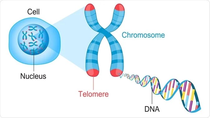 Imagine a shoe lace. The end of a shoe lace has a cap. It is called aglet. It protect the lace from fraying. Your telomere does the same thing to the “lace” of your DNA’s chromosome.